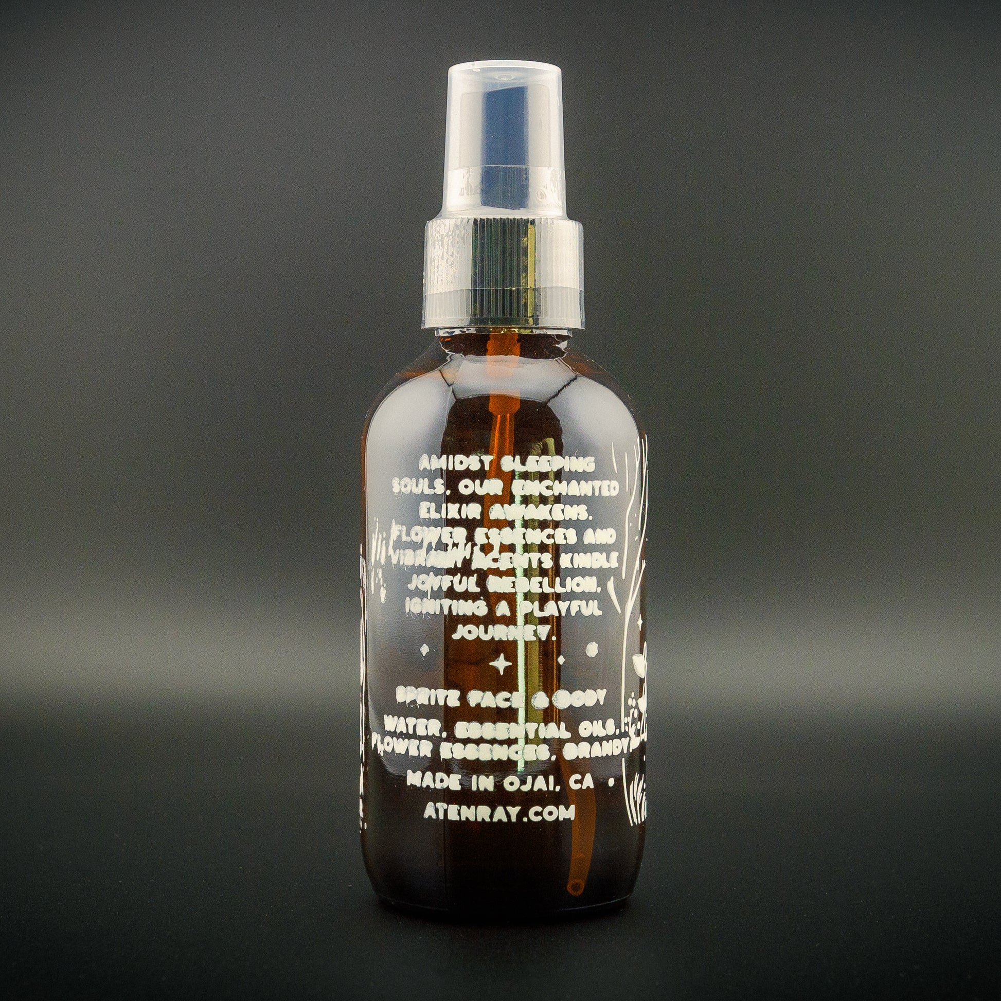 Usage: With each spritz, reclaim your essence. Mist your personal space, drench yourself in rebellion. Shake well before every use; awaken the flower magic within.